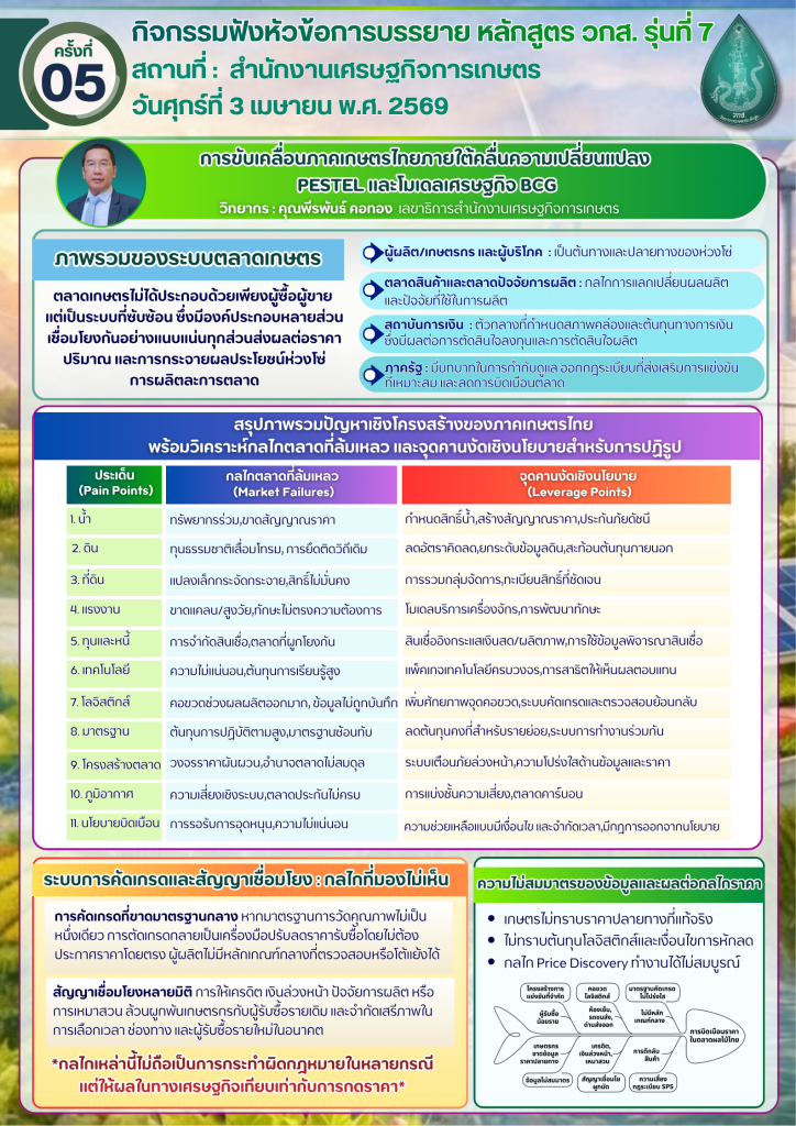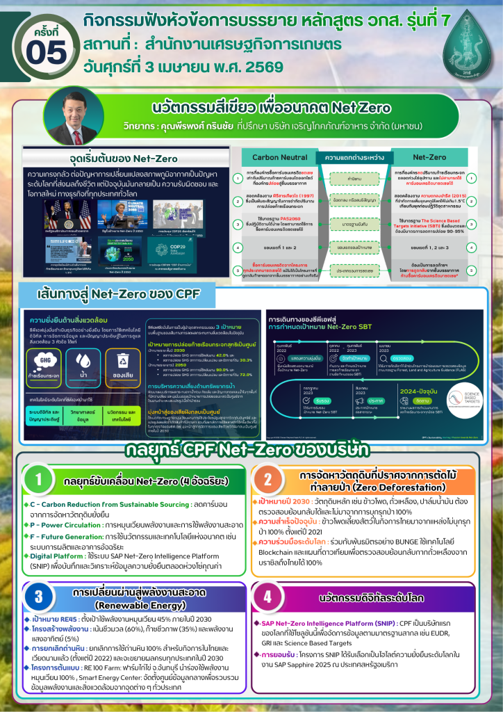 กิจกรรมฟังหัวข้อบรรยาย : การขับเคลื่อนภาคเกษตรไทยภายใต้คลื่นความเปลี่ยนแปลง PESTEL และโมเดลเศรษฐกิจ BCG และนวัตกรรมสีเขียว เพื่ออนาคต Net Zero